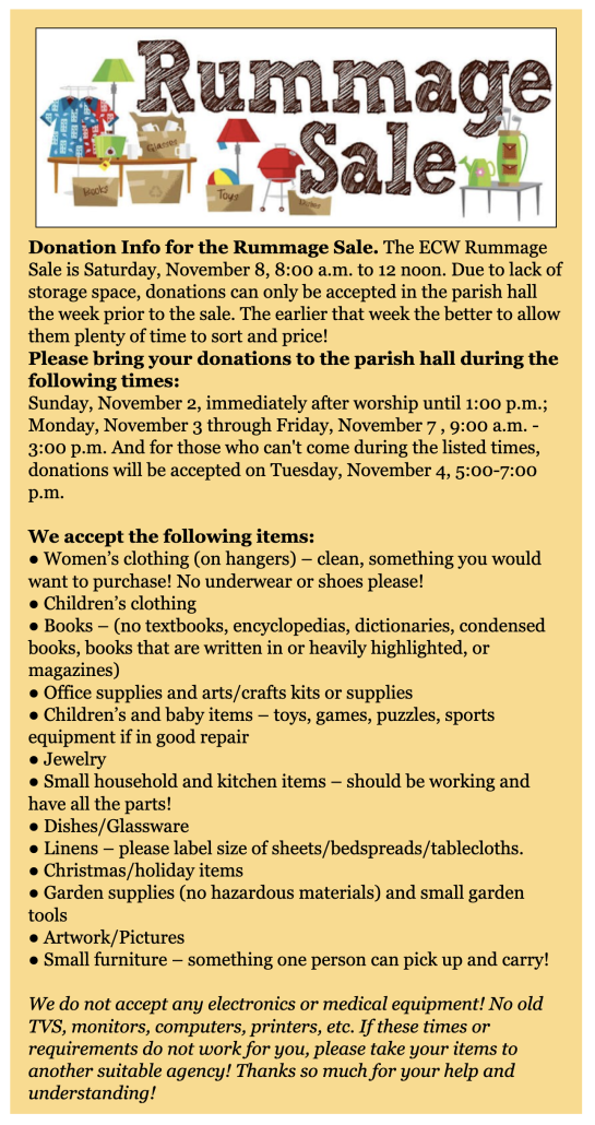 There’s a place for you in the Episcopal Church! The Grace Church Confirmation Series continues this Sunday, November 2. Enter into a deeper relationship with Christ through your association with Grace Church. If you have not yet been confirmed or received into the Episcopal Church, it’s not too late to join this series. Please contact Fr. Tim McRee. Classes meet at 9:00 a.m. Sunday mornings in the library.