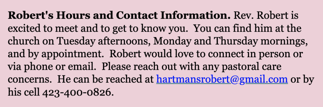 ● Children’s Chapel. Beginning Easter Sunday, children ages 5-12 are welcome to join a liturgical, musical chapel service in the “Children’s Chapel.” Every Sunday, the 10:30 service will begin with a Children’s Moment followed by a procession to the children’s chapel. Children will return during the passing of the peace. Children are welcome to join the chapel or remain with their grownups in the congregation. If you would like to get involved please reach out to Casey Miller, casandra.miller@gmail.